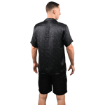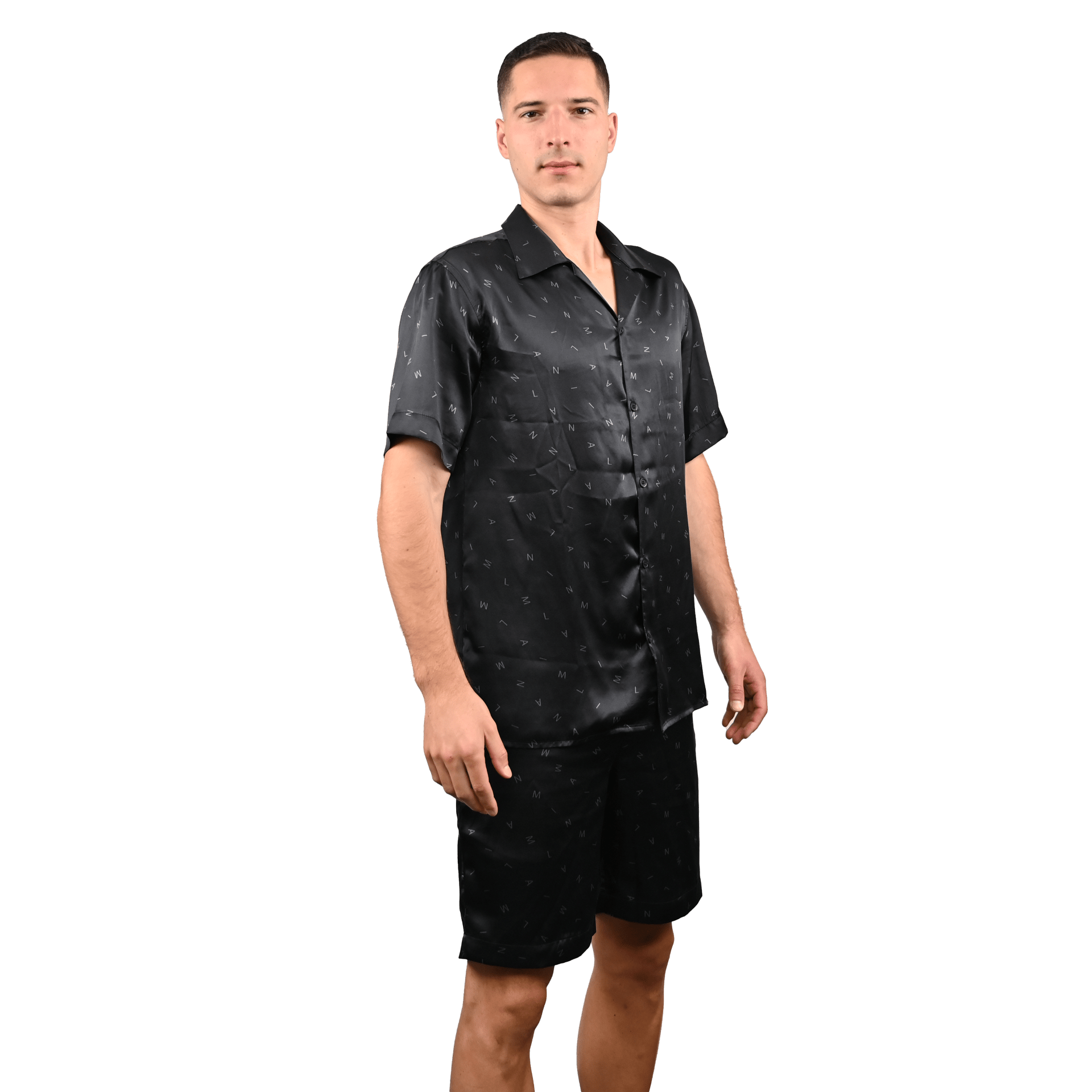 The top showcases a beautiful, eye-catching print and Cuban collar inspired by Miami’s luxury landscape, while the trousers feature subtle pockets for added convenience. The luxurious silk fabric feels soft, and light against the skin, making it playful for Miami days and nights.